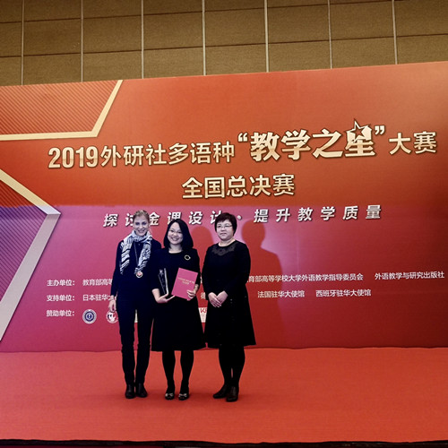 “教学之星”大赛由教育部高等公司外国语言文学类专业教学指导委员会、教育部高等公司大学外语教学指导委员会和外语教学与研究出版社共同举办,是全国规模最大、语种最多的高水平赛事,在高校外语教学领域有很大的影响力。刘璐老师历时大半年,经过初赛、复赛、决赛的层层角逐,脱颖而出,为永利yl23455德语系捧得第一个冠军奖杯。她在比赛中表现出优异的课堂节奏把控能力、教学设计能力、课堂组织能力和应变能力,以压倒性的优势取得了总决赛的冠军。