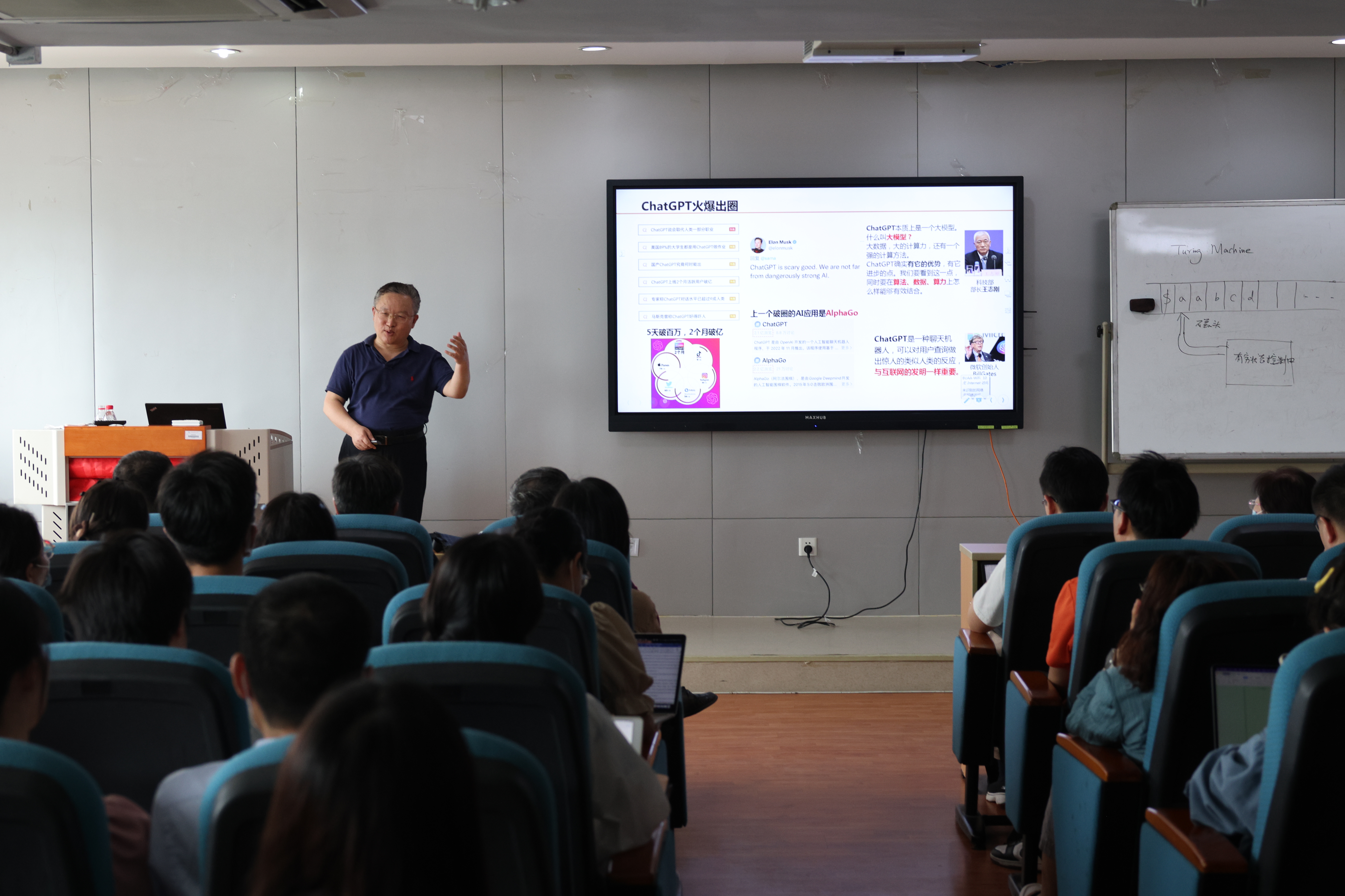 在学习贯彻习近平新时代中国特色社会主义思想主题教育中,外国语公司党委坚持把理论学习、调查研究、推动发展、检视整改有机融合、一体推进,注重将主题教育学习成果转化为高质量发展的新成效。为进一步科学凝练和谋划外国语言文学学科未来发展方向,落实“精品文科”建设要求,扎实推进新文科建设,结合校院两级管理体制改革试点工作,近日,永利yl23455邀请计算机公司李舟军教授作题为“ChatGPT:背景、技术及应用”的专题报告。外国语公司党委委员、学术委员会主任卫乃兴教授主持报告,公司班子成员和广大教师、员工代表参加活动。