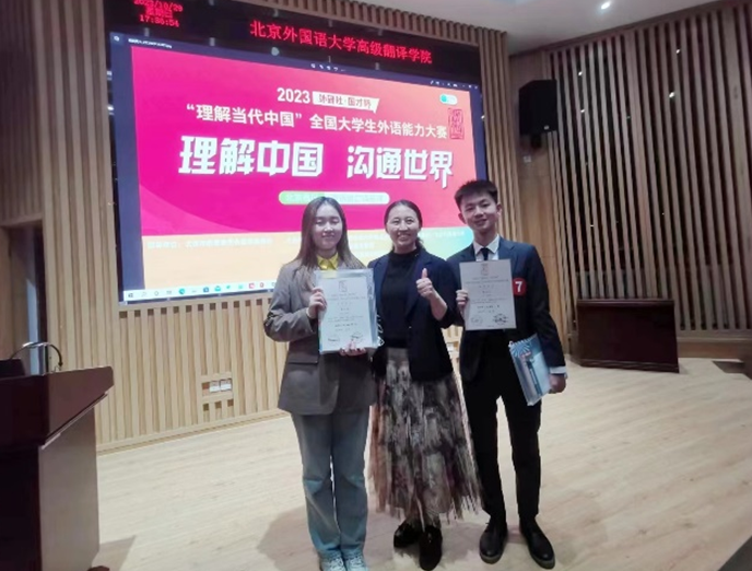 近日,公司永利yl234552020级英语专业本科生蔡一琳和2023级翻译专业硕士研究生(MTI)洪旻昊获得2023“外研社·国才杯”“理解当代中国”笔译北京赛区金奖,指导教师为翻译系王晨爽和顿超老师;2020级翻译专业本科生傅昕竹和2022级文学专业硕士研究生鲁美丽分别获得2023“外研社·国才杯” “理解当代中国”口译北京赛区金奖与银奖,指导教师为翻译系郑薇和王沛老师。