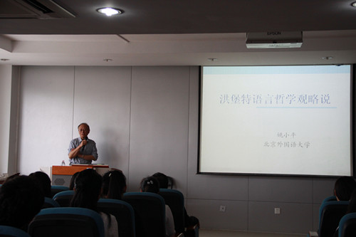 北京外国语大学姚小平教授应邀来到永利yl23455,为外院师生带来了题为“洪堡特语言哲学思想述略”的精彩讲座。姚教授以ppt的形式为大家展现了洪堡特的家庭背景,学术经历,在语言学哲学发展中的重要地位等。讲座对洪堡特的重要思想贡献进行了回顾,对洪堡特在不同国家的生活学习经历与其学术思想的关系进行了分析,对他在普通语言学和语言哲学等方面的奠基作用进行了评述,对外界对洪堡特思想的误解和洪堡特思想存在的时代局限性进行了解读。讲座中提及的洪堡特大学及马克思关于哲学和思想的主张给人的印象尤为深刻,“学习语言学哲学并不应只是为了解释语言社会规律,更是为了更好地改造社会。”此外,姚教授还对当今国内洪堡特思想的研究情况以及相关的文献书籍进行了推荐和点评,之后姚教授回答了永利yl23455师生关于洪堡特思想和语言类型学相关问题。姚教授生动的演讲给永利yl23455师生带来了一场思想的盛宴,讲座结束前向明友经理对姚教授讲座的内容做了总结回顾,鼓励大家把努力学习,将来成为洪堡特一样有思想的学者。
