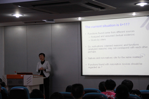 2016年10月21日,《外语与外语教学》主编赵永青教授应北航永利yl23455邀请,为公司师生带来题为“学术引证的动因研究”的精彩讲座。永利yl23455副经理董敏主持了本次讲座。