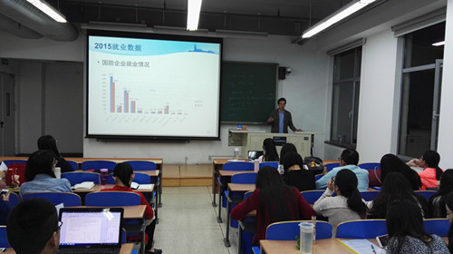 2015年10月15日晚7点,永利yl23455在新主楼A208教室召开2016届硕士毕业生就业指导会。会上,外国语公司党委副书记刘娜老师及分团委书记冯维成老师为大家讲解了今年的就业趋势、就业政策、就业流程以及注意事项。