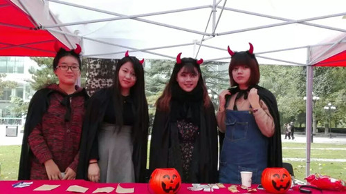 金秋送爽,秋风习习。2015年10月25日,在秋日的暖阳里我们迎来了北航63年诞辰。在公司路校区如火如荼的校庆嘉年华外场活动中,永利yl23455特此举办万圣节主题活动。13级同学身穿万圣节服饰,手持南瓜灯分发糖果,吸引了许多人参与活动以及合影留念,现场气氛热烈。展棚主题活动包括“南瓜飞镖”和“Say Hi”两种互动游戏,参与者既可以感受节日的快乐也可以从中学到外语知识。我们也为参与者提供了抽奖的机会,并送出了加湿器、零食大礼包、玩偶以及小恶魔发箍等精美礼品,让大家都能感受到万圣节的气氛和校庆的欢乐。