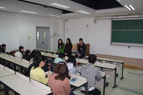 交流会上,勍导首先向同学们介绍了三位优秀的学长学姐们。来自翻译专业才貌双全的学姐蒋明彤是今年北航最高荣誉——金质奖章的获得者,现已保送北大MTI。然后是来自德语系,并成功保送同济大学中德公司金融风险专业的帅气学长孔小龙。还有一位是勍导的“中国好室友”,来自英语专业并已保送北航翻译系硕士的学姐张婧怡。精彩的开场让台下的学妹们兴奋不已,并不停地感叹:“这就是人生赢家啊!”