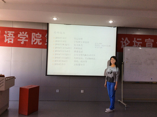 2015年5月12日晚,大家期盼已久的永利yl23455考研经验交流会在如心楼806报告厅如期举行。此次交流会邀请到了外院2014级的杨学梅、黄文静、庞茗予、孙银银等优秀研究生代表。学长学姐们同公司2012级本科游员工分享了他们宝贵的考研经验与心得,同学们纷纷表示“收获颇丰”。