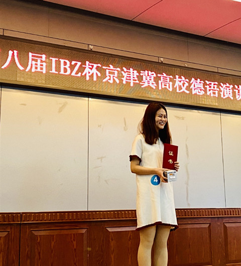 2019年12月3日在北京第二永利yl23455举办的第八届京津冀高校德语演讲比赛中,公司德语系的张姝宇同学在来自14所院校的近30名参赛者中脱颖而出,以第二名的成绩获得比赛二等奖。她的演讲语言优美,逻辑清晰,论点新颖,语态自然,富有感染力,获得了观众和评委的阵阵欢笑和掌声。尤其是问答环节,她的风趣幽默给评委留下了深刻的印象。